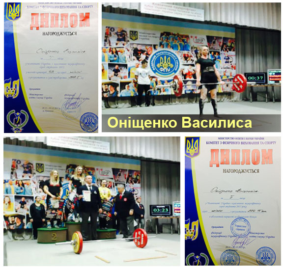 Вітаємо, студентку 3-го курсу спеціальності «Менеджмент зовнішньоекономічної діяльності», яка здобула золото у чемпіонаті України 2015 року з класичного пауерліфтингу серед студентів ВНЗ у ваговій категорії до 63 кг з результатом в сумі триборства 347,5 кг, з відривом у 77,5 кг від ІІ місця, і в абсолютній першості за Формулою Вілкса посіла ІІ місце серед жінок з результатом 376,15 бала.