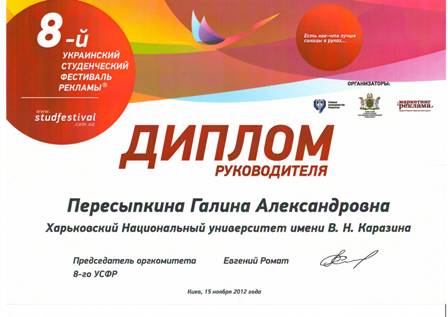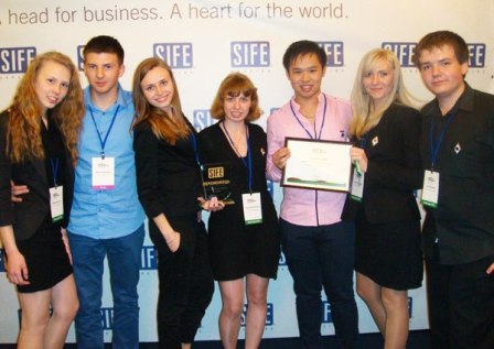 29.05.2012 команда SIFE ХНУ імені В.Н. Каразіна, під керівництвом викладача кафедри маркетингу та менеджменту ЗЕД Пересипкіної Галини Олександрівни, взяла участь у Національних змаганнях SIFE Україна і виграла спеціальний приз. |
