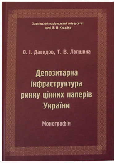 Давидов О.І., Лапшина Т.В. Депозитарна інфраструктура ринку цінних паперів України : монографія / О. І. Давидов, Т. В. Лапшина. – Х. : ХНУ імені В.Н. Каразіна, 2011. – 264 с.