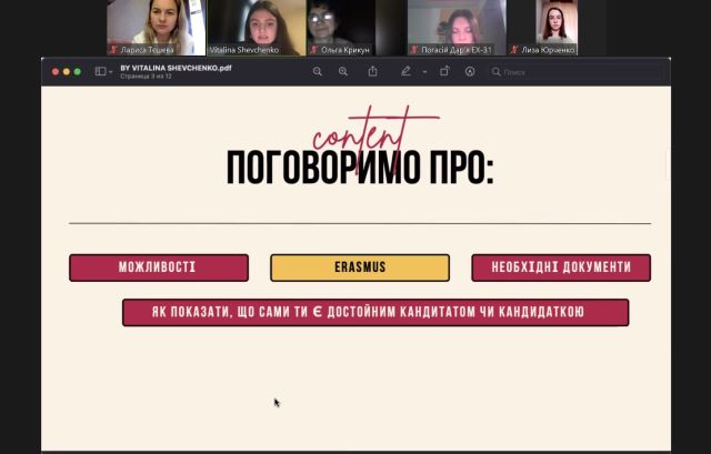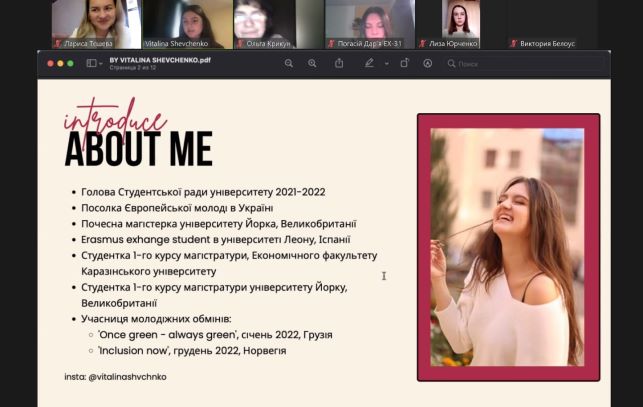 23.11.2022 23 листопада 2022 року реалізовано ініціативу, присвячену питанням міжнародної академічної мобільності здобувачів вищої освіти кафедри економіки та менеджменту Одним із ключових напрямків діяльності Університету – є поглиблення співпраці у міжнародній сфері. Кафедра економіки та менеджменту підтримує та усіляко сприяє реалізації права здобувачів вищої освіти на міжнародну академічну мобільність. Головною метою зустрічі було надання інформації про те, де можна відслідковувати пропозиції щодо участі у програмах академічної мобільності та моніторити умови участі у таких програмах. А, найціннішим було те, що на зустріч завітали здобувачі вищої освіти, які мають досвід участі у програмах академічної мобільності та радо поділилися ним. Спікерами виступили: Віталіна Шевченко - голова Студентської ради університету 2021-2022 років, Посолка Європейської молоді в Україні, яка поділилася своїми враженнями щодо участі у програмах мобільності та надала рекомендації, щодо особливостей підготовки документів для участі у програмах мобільності. Вікторія Білоус здобувач вищої освіти за освітньою програмою «Публічне управління та адміістрування», групи ЕЛ-41, яка будучи студенткою 3-го курсу приймала участь у програмі і навчалась у Лодзинському університеті, Польща. Дарья Погасій здобувач вищої освіти освітньої програми «Менеджмент бізнес-процесів», групи ЕХ-31, яка саме цього семестру навчається в університеті Боконні. Мілан, Італія. Єлізавета Юрченко здобувач вищої освіти освітньої програми «Публічне управління та адміністрування» групи ЕЛ-31, яка поділилася досвідом участі у таких напрямках міжнародної співпраці як Літні та Зимові міжнародні школи. Це онлайн проєкти, які надають цікавий та корисний досвід участі у короткострокових міжнародних проєктах.