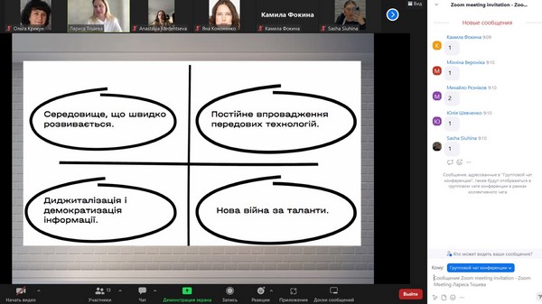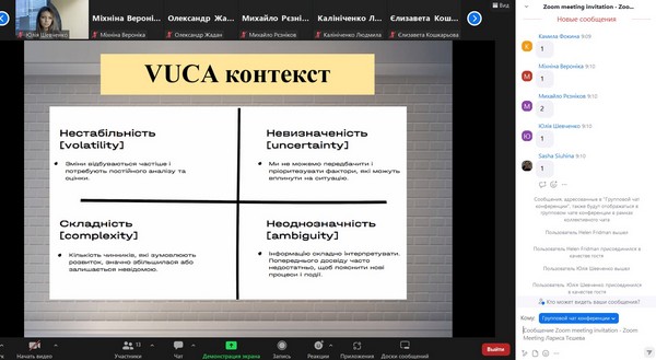 20.03.2024 року 20 березня 2024 року о 13:40 в рамках кураторської години зі здобувачами спеціальності «Менеджмент» і «Публічне управління та адміністрування» відбулася зустріч з Наталією Поставною, яка має багаторічний досвід роботи у сфері кар'єрного консультування.