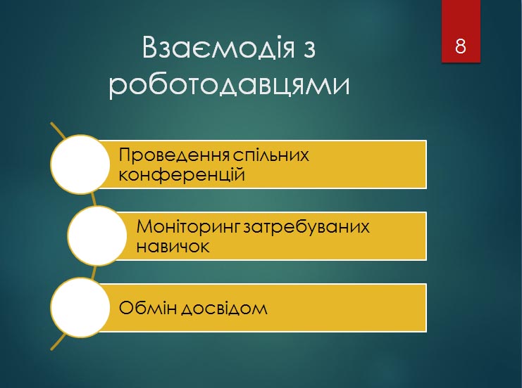 Серед основних напрямків покращання сприяння працевлаштуванню випускників керівництво економічного факультету вбачає: