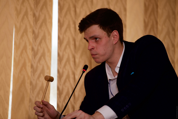 Модератором Турніру виступив декан економічного факультету ХНУ ім. В.Н. Каразіна доцент О.І. Давидов, віце-модераторами – доцент Д.В. Мангушев, доцент А.В. Хмельков, голова Правління Наукового товариства студентів, аспірантів, докторантів і молодих учених Ю.І. Прус та голова Студентської ради А.Д. Мозгова.
