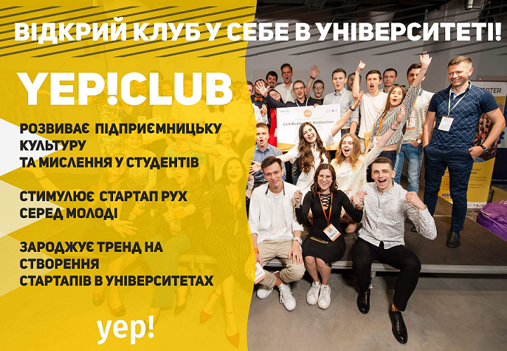 Такий клуб за технічної та методологічної підтримки з боку YEP створено і на економічному факультеті. У факультетському клубі YEP відбуватимуться зустрічі з локальними підприємцями, обговорення нових ідей та проектів, тематичні перегляди фільмів та відео-лекцій. Місія клубу – розвиток підприємницької культури та мислення у студентів, стимулювання стартап руху серед молоді та зародження тренду на створення стартапів на факультеті. Клубом керує команда факультету: найінноваційніші студенти-волонтери з усіх спеціальностей економічного факультету та координатор: доц. Кудінова М.М.