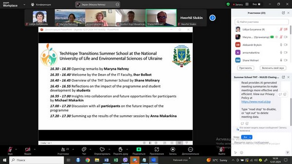 Співробітництво з фондом TechHope Transitions (США) і українськими партнерами12 липня викладачі кафедри (зав. кафедри проф. Т. Меркулова, доц. Т. Біткова, проф. Л. Гур'янова, викл. М. Максимов, аспіранти В. Бобров та Г. Слукін) взяли участь в он-лайн зустрічі з представниками американської організації TechHope Transitions, з якою за ініціативою декана економічного факультету В. Дячека укладено Меморандум про співробітництво з Університетом Каразіна. На зустрічі обговорювалися підсумки пілотного проекту – літньої школи з проектного менеджменту, бізнес-аналітики та програмування на базі НУБіП України, а також подальші кроки співпраці. Дякуємо організаторам зустрічі з боку НУБіП, американським колегам та модератору проф. Марині Негрей за можливість обговорення перспектив співпраці, зокрема у рамках програм USAID.jj Майбутні плани чекають на реалізацію!